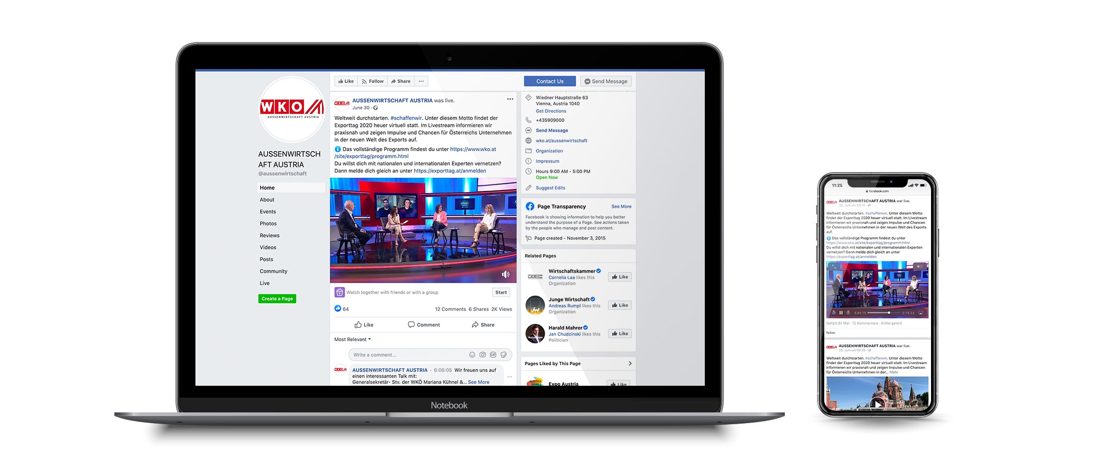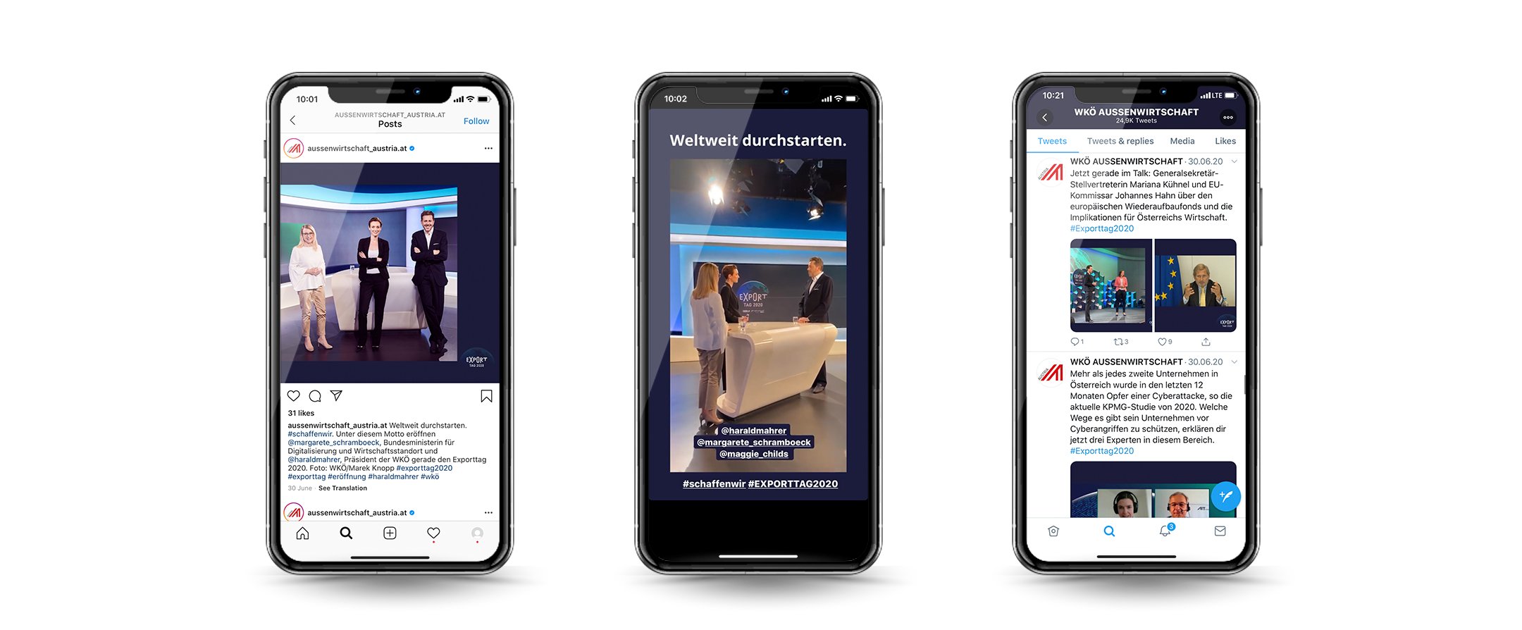 Die Covid-19-Pandemie stellte den Eventbereich 2020 vor einige Herausforderungen. Zahlreiche Veranstaltungen mussten abgesagt werden, nicht so der Exporttag der AUSSENWIRTSCHAFT AUSTRIA. Die Umstellung auf eine virtuelle Konferenz vermittelte Social Hearts durch zielgerichtete Social Media Ads im Vorfeld erfolgreich dem Publikum.