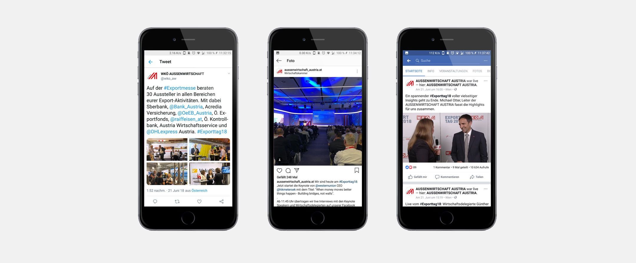 Wer selbst nicht vor Ort sein konnte, bekam über das Social Web die Chance, doch nichts zu versäumen. Während Twitter Eventbesucher:innen und Online-Follower:innen mit wichtigen Programminhalten versorgte, servierten Instagram-Stories dem Publikum Eindrücke von der Veranstaltung. Darüber hinaus streamte unser Kamerateam Videointerviews mit Keynote-Speaker:innen sowie ausgewählten Wirtschaftsdelegierten live auf Facebook.