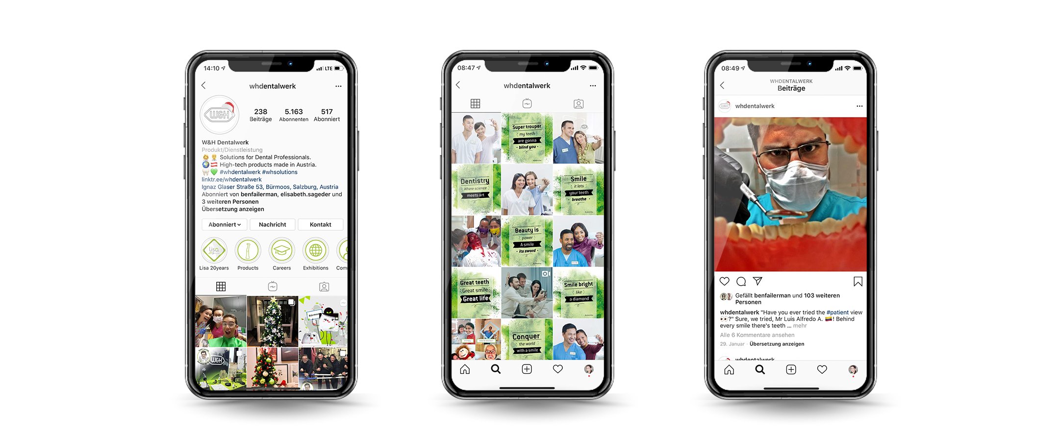 Erst kürzlich konnten wir die 5.000 Follower:innen-Marke knacken, mitunter durch unser herzhaftes Community Management. Ebenso ein Erfolgsfaktor: Die Mischung aus unterhaltsamen Beiträgen der weltweiten W&H-Community und strategischen Inhalten zu neuen Produkten und Innovationen.
